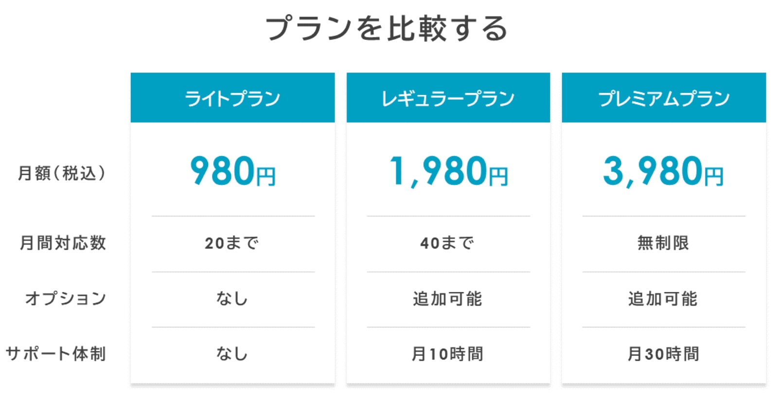 ここで離脱されるのを防ぐために、性能・価格・特徴などを一目で比較できる表を入れるのがおすすめ。選択基準を明確にして購入までの迷いを解消、コンバージョン率の向上に直結します。