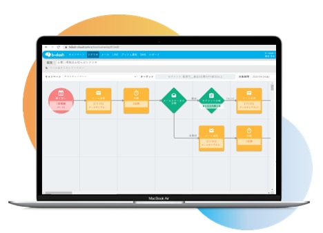 セグメントで抽出した顧客に対して、直感的な操作でLINE配信フローを組むことができる