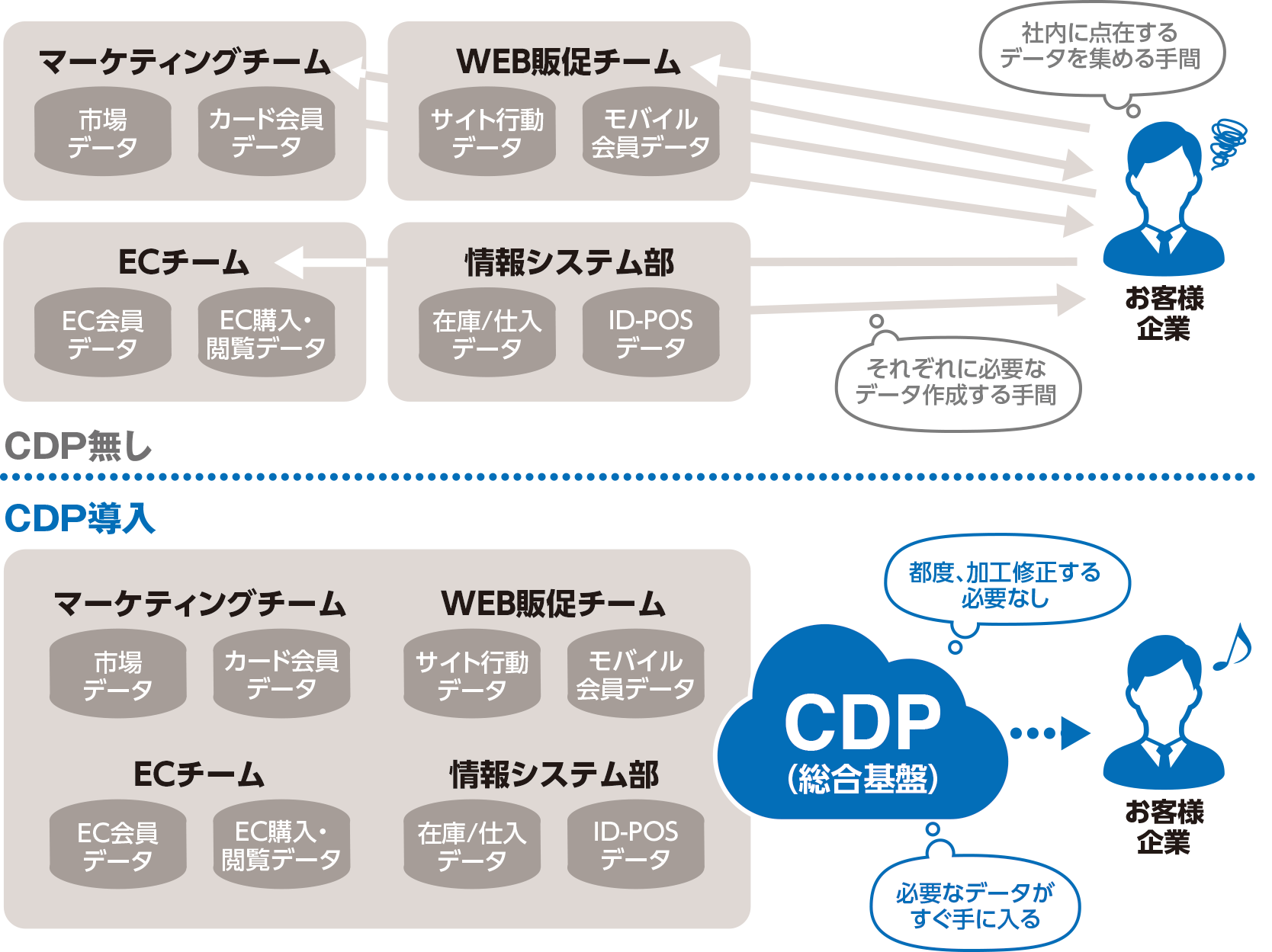 →店舗/WEB/複数システム等各所に点在しているデータを実際にチェックして整理・整備